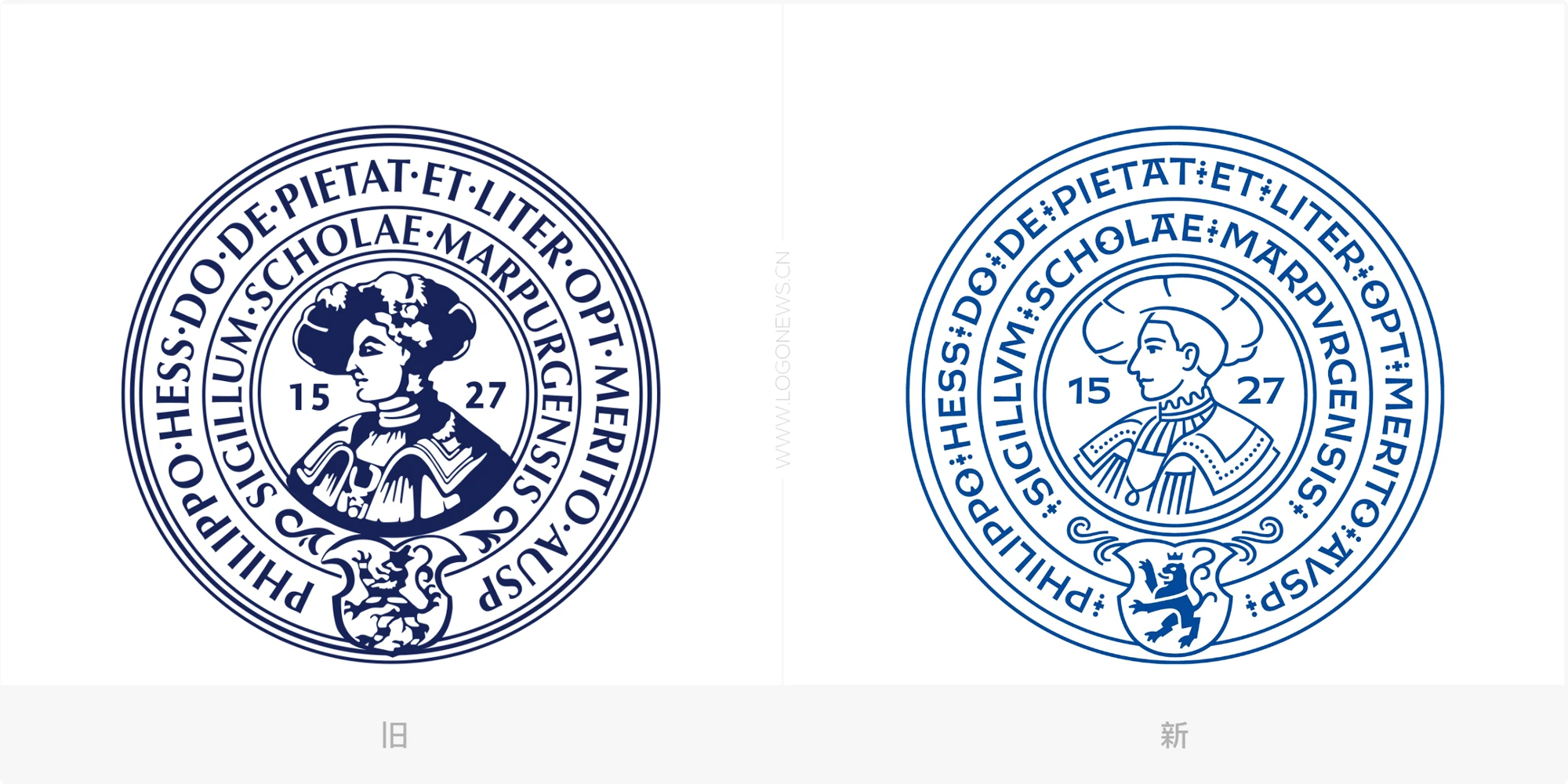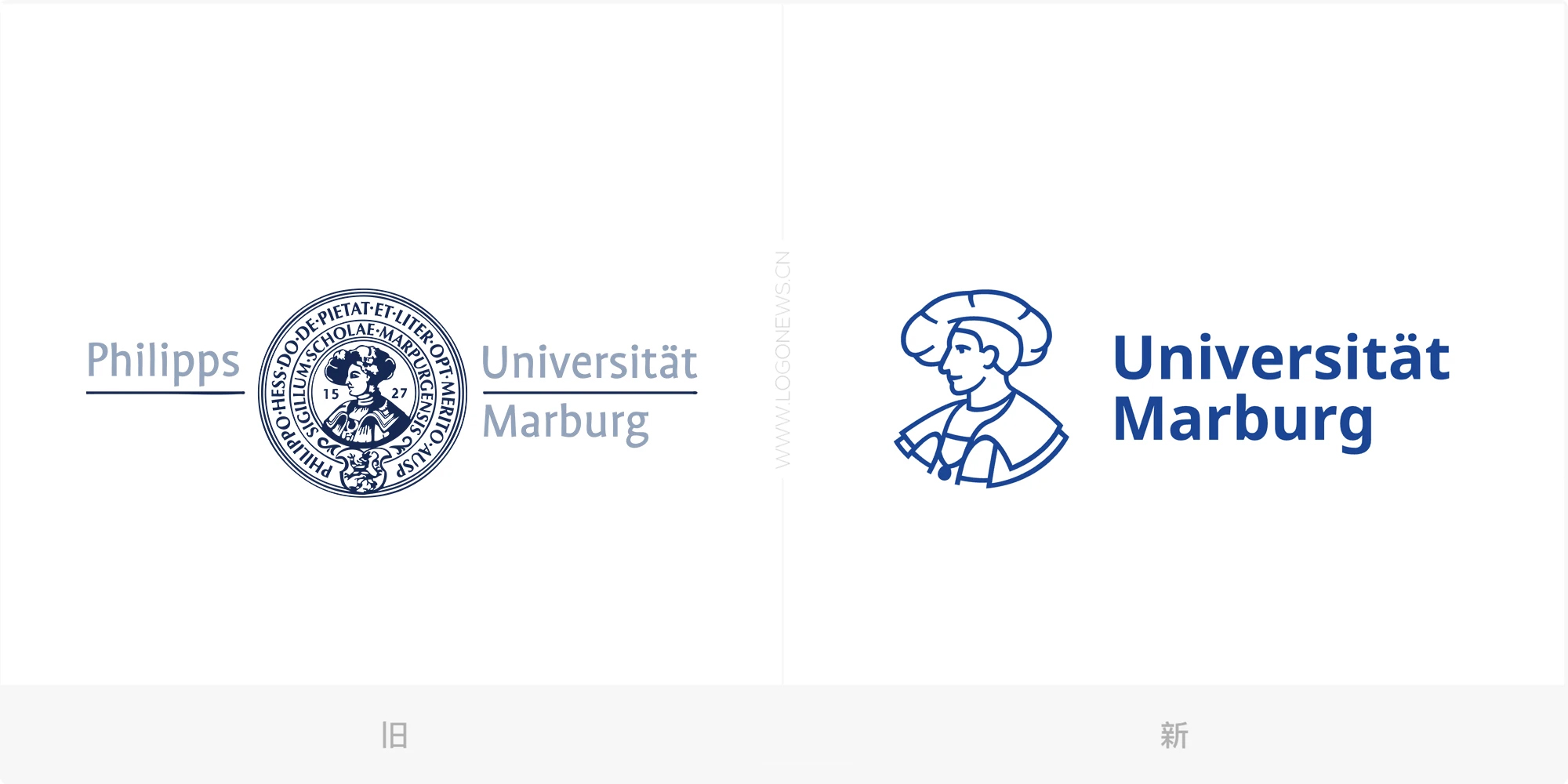全新的設(shè)計并非完全摒棄傳統(tǒng)印章,而是在保留印章元素的基礎(chǔ)上進行了簡化和現(xiàn)代化重繪。大學(xué)官方LOGO中,傳統(tǒng)印章中的“腓力頭像”被提取出來作為主視覺圖形,與“Universit?t Marburg”文字并列組成全新標(biāo)識。字體也由原來的Profile Pro更換為更為現(xiàn)代、國際通用的Noto Sans。盡管大學(xué)正式名稱“Philipps-Universit?t Marburg”仍然保留,但在LOGO中省略了“Philipps”一詞,旨在提升國際辨識度,同時增加了英文版“Marburg University”。