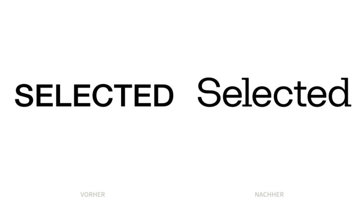 全新Selected標(biāo)志的字標(biāo)設(shè)計(jì)頗具特色。在時(shí)尚界,將不同的風(fēng)格、時(shí)代、文化等元素巧妙地融合在一起,形成一套獨(dú)特的服裝,被稱為“混搭”。全新Selected標(biāo)志在字體設(shè)計(jì)上也體現(xiàn)了這種風(fēng)格的混搭。襯線和無(wú)襯線字母的組合,以及線條粗細(xì)對(duì)比迥異的字母(例如“d”和“e”)。這使得這一表達(dá)既經(jīng)典又充滿科技感,卻又不失一種奇特的冷漠。