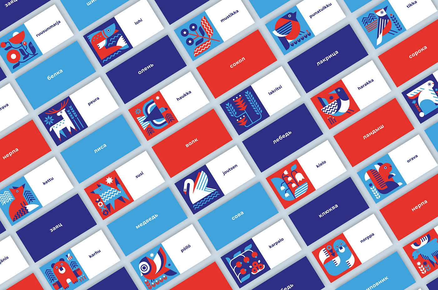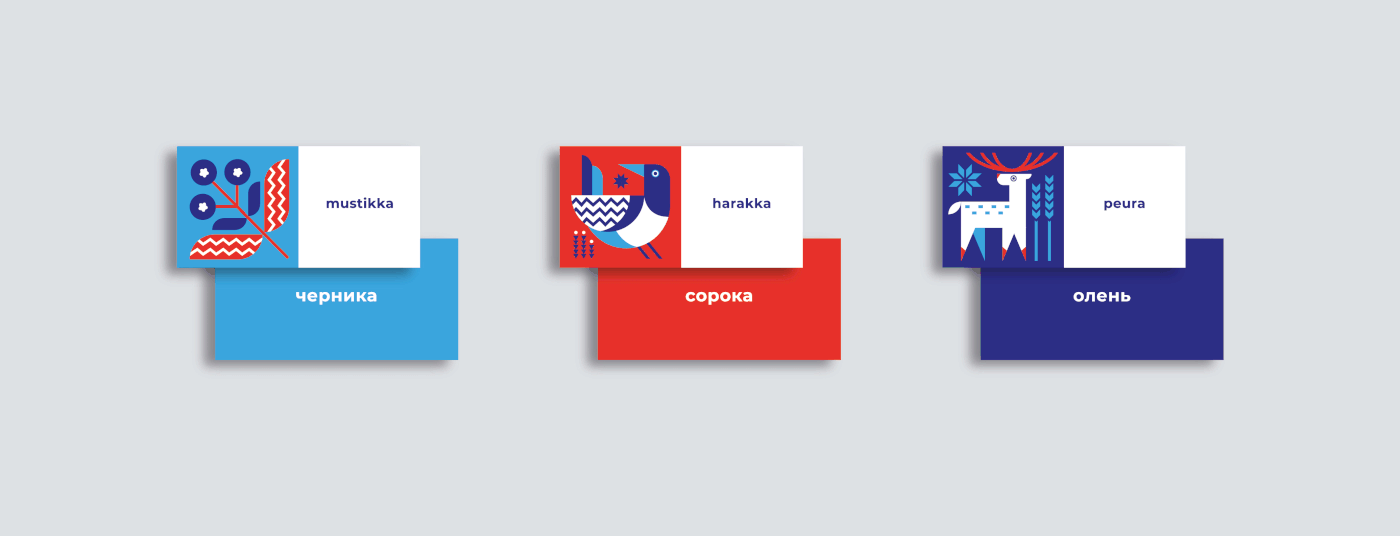 一套用于語言學(xué)習(xí)的卡片--插圖保留了身份的一般風(fēng)格形成獨(dú)特的品牌視覺語言系統(tǒng),它們的特征是獨(dú)特和令人難忘的。這套節(jié)目的主題是芬蘭的性質(zhì)。品牌形象設(shè)計中品牌色彩是五顏六色的圖像將使學(xué)習(xí)過程多樣化,幫助你更快地學(xué)習(xí)單詞,激活視覺記憶。