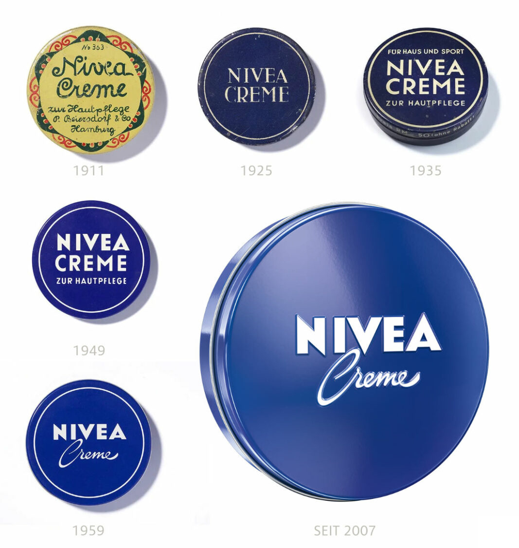 幾十年來,妮維雅品牌logo設(shè)計(jì)大多發(fā)生了相當(dāng)微妙的變化。另一方面,在包裝設(shè)計(jì)方面,進(jìn)行了更廣泛的重新設(shè)計(jì)。最近,在 2013 年,作為統(tǒng)一過程的一部分,包裝設(shè)計(jì)在全球范圍內(nèi)進(jìn)行了調(diào)整,圓形品牌標(biāo)志被定義為所有產(chǎn)品線中所有包裝的基本組成部分。還有很多包裝的形狀當(dāng)時(shí)被修改了。勉強(qiáng)完成——這樣的設(shè)計(jì)過程基本上永遠(yuǎn)不會完成——下一個(gè)進(jìn)化步驟發(fā)生了,可以這么說。因?yàn)闉榱烁蠒r(shí)代的變化,品牌形象設(shè)計(jì)也在不時(shí)地進(jìn)行調(diào)整、調(diào)制和更新,包括妮維雅的設(shè)計(jì)也是如此。