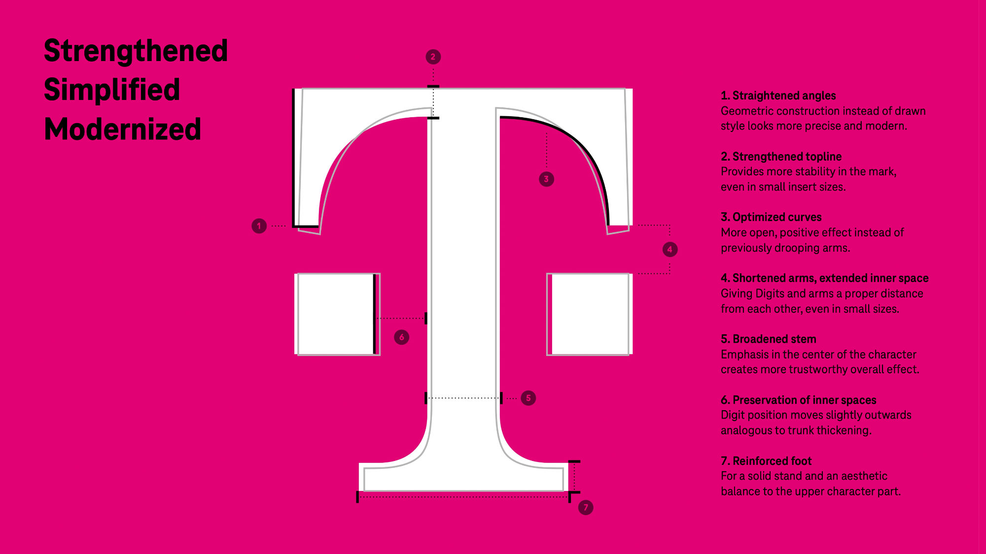 即使現(xiàn)在有兩位數(shù)字,T 標志也是明確無誤的,顯然是 Telekom 品牌的發(fā)件人。與耐克、蘋果、梅賽德斯或奧迪等具有強大(廣告)影響力的其他品牌一樣,長期以來沒有必要顯示全名。T-signet 的減少創(chuàng)造了一個緊湊且對稱的標志 - 在處理和可變性方面,在企業(yè)設計中沒有更好/更實用的解決方案。
