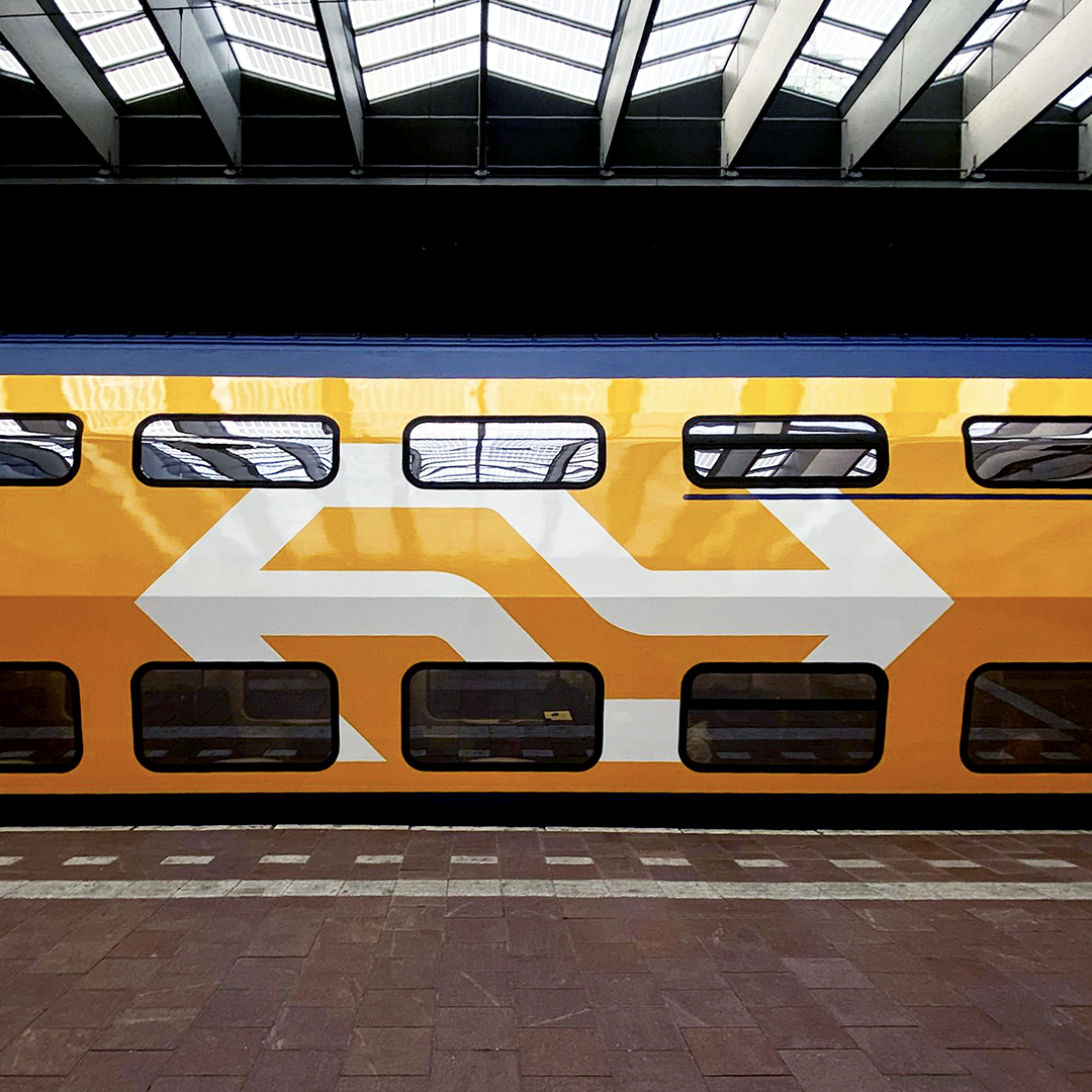 荷蘭鐵路有大量的接觸點和復雜的治理挑戰(zhàn)。在某種程度上,我們專注于簡化品牌形象設計和執(zhí)行,將身份帶回其核心。接下來,我們將“流程”作為一個新元素引入。流動為身份增添了圓潤、溫暖和運動的有機效果。顯然,火車是客戶旅程中最關鍵的部分。 Studio Dumbar 為火車創(chuàng)造了一個新的設計。該設計融合了流動的理念,使標志更加突出和自豪,使火車看起來更現(xiàn)代、更快捷。雖然目前每種類型的列車看起來都不同,但從長遠來看,荷蘭鐵路的所有列車都將采用新設計