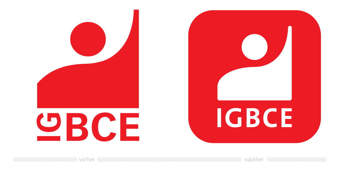 成立于 1997 年的礦業(yè)、化學(xué)和能源工業(yè)聯(lián)盟 (IG BCE) 對其標(biāo)志設(shè)計進行了修改。該標(biāo)志于10月底在IG BCE工會大會上正式亮相。然而,當(dāng)時用于字標(biāo)的字體隨后再次更改。