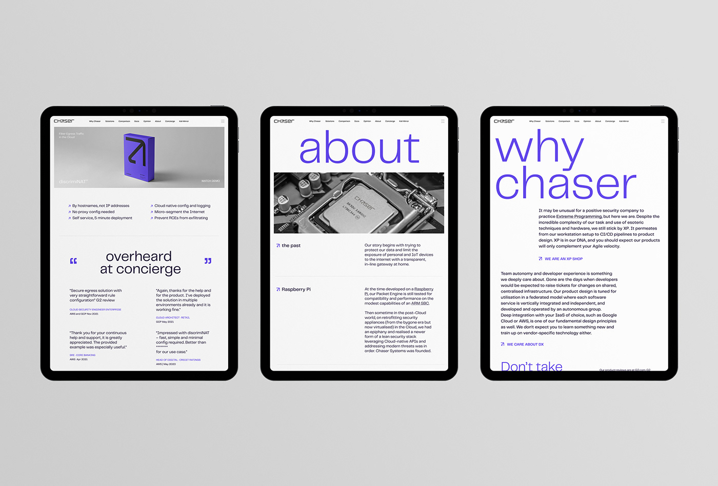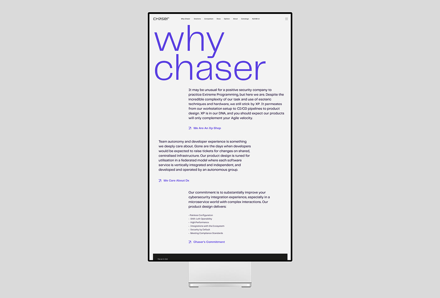Chaser Systems 是一家總部位于英國的網(wǎng)絡(luò)安全公司,致力于保護(hù)領(lǐng)域,基于簡單、專業(yè)、產(chǎn)品有效性和開發(fā)人員經(jīng)驗(yàn)的原則。該公司尋求解決最復(fù)雜的網(wǎng)絡(luò)安全問題,構(gòu)建在最基本層面起作用的解決方案,在安全性和可用性之間達(dá)到最佳平衡,以滿足安全管理人員和開發(fā)人員的需求。