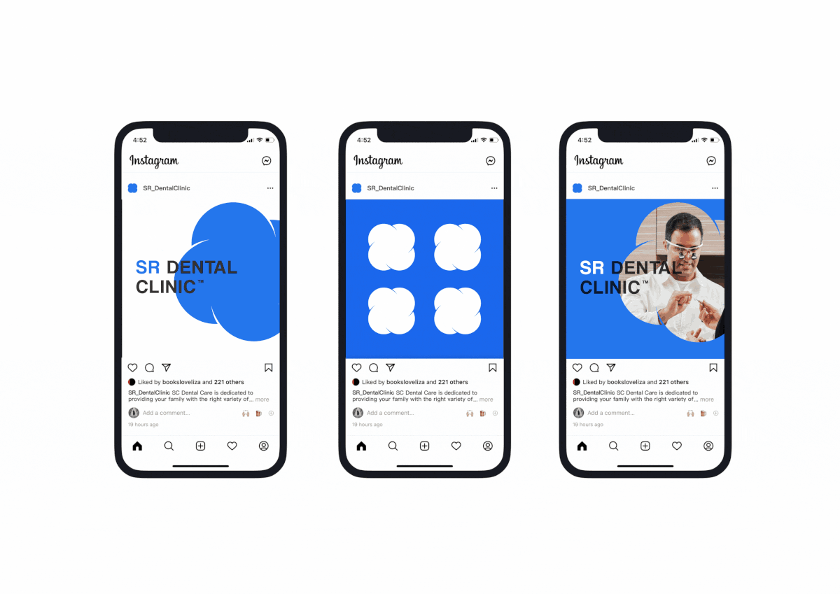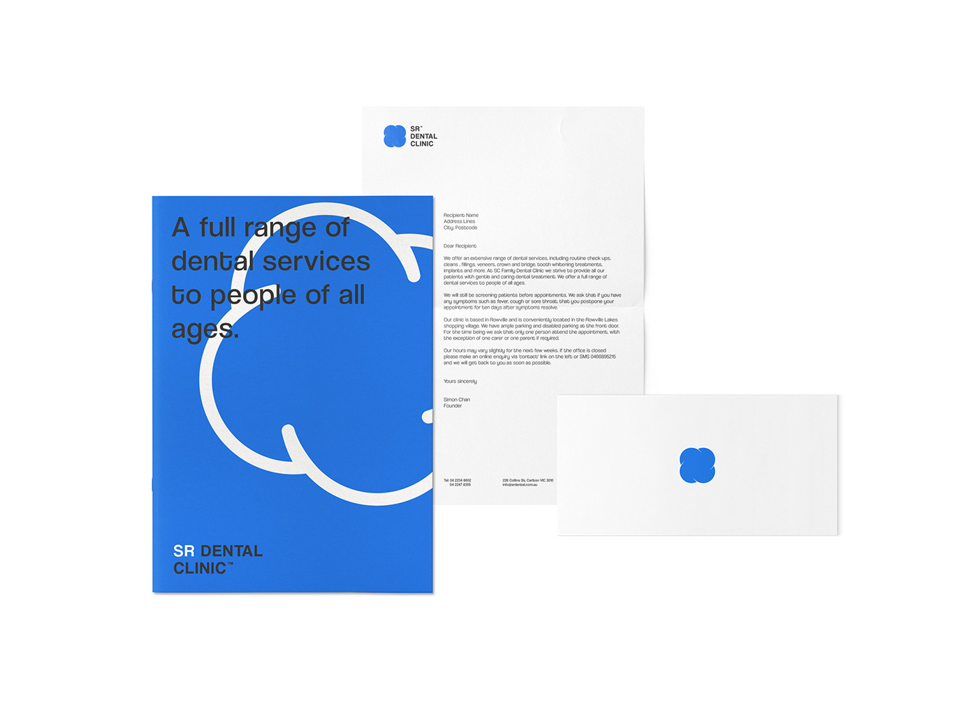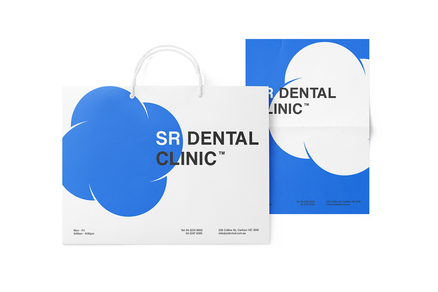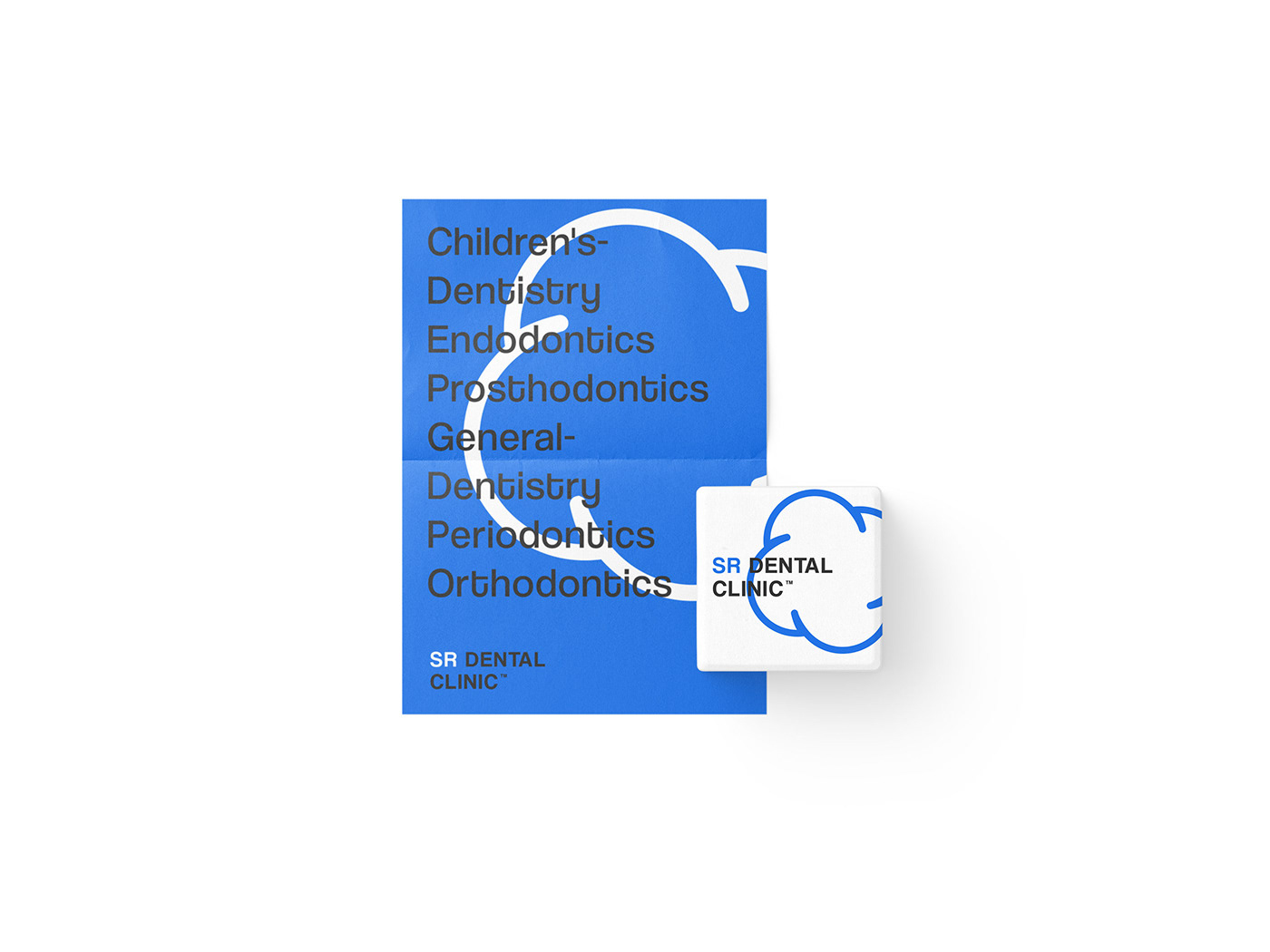 最后,圍繞簡潔的圖形建立了一個品牌形象設計,采用明亮的醫(yī)用藍色、俯視圖上一顆臼齒的抽象形狀和現(xiàn)代身份識別系統(tǒng),可以成功地應用于古典和數(shù)字通信。
