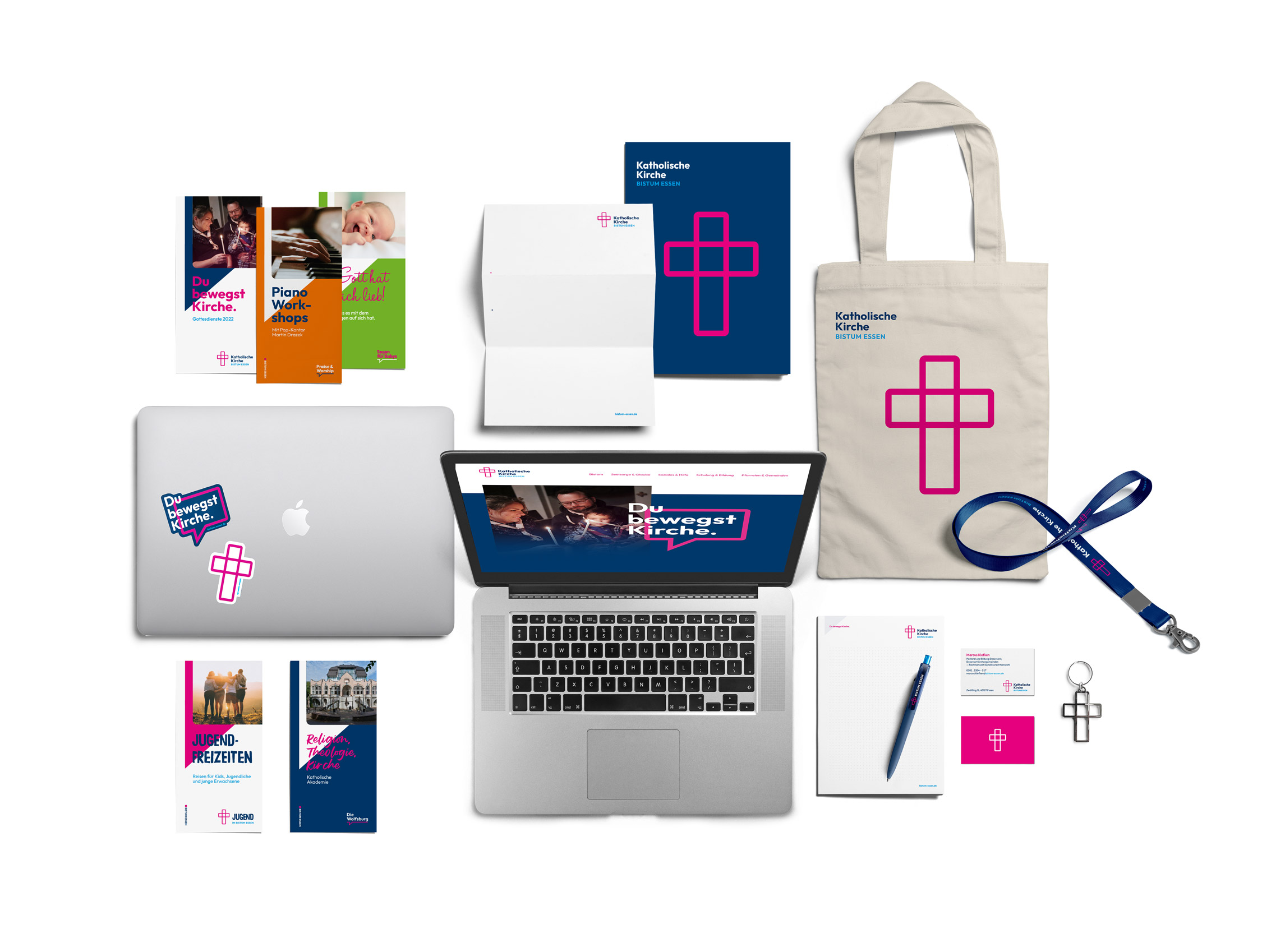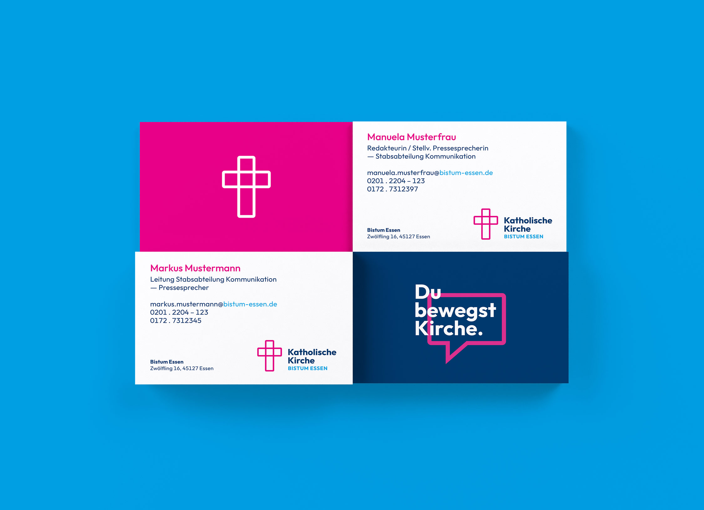 同樣新的是,字母“Bistum Essen”不再是唯一的字標(biāo)?,F(xiàn)在的重點(diǎn)是兩行名稱(chēng)“天主教堂”。下面是更小的集合名稱(chēng)“Bistum Essen”。這應(yīng)確保公眾有更好的能見(jiàn)度?!拔覀儾荒茉偌僭O(shè)每個(gè)人都知道教區(qū)這個(gè)詞的確切含義,”副主教克勞斯·普費(fèi)弗解釋說(shuō)。同時(shí),通過(guò)十字架和刻字這種開(kāi)放和更廣泛的象征意義邀請(qǐng)?jiān)S多組織、機(jī)構(gòu)和教區(qū)為自己采用這個(gè)標(biāo)志?!巴ㄟ^(guò)這種方式,我們很有可能在與我們教區(qū)的整體多樣性的公共交流中變得更加知名,”副主教說(shuō)。