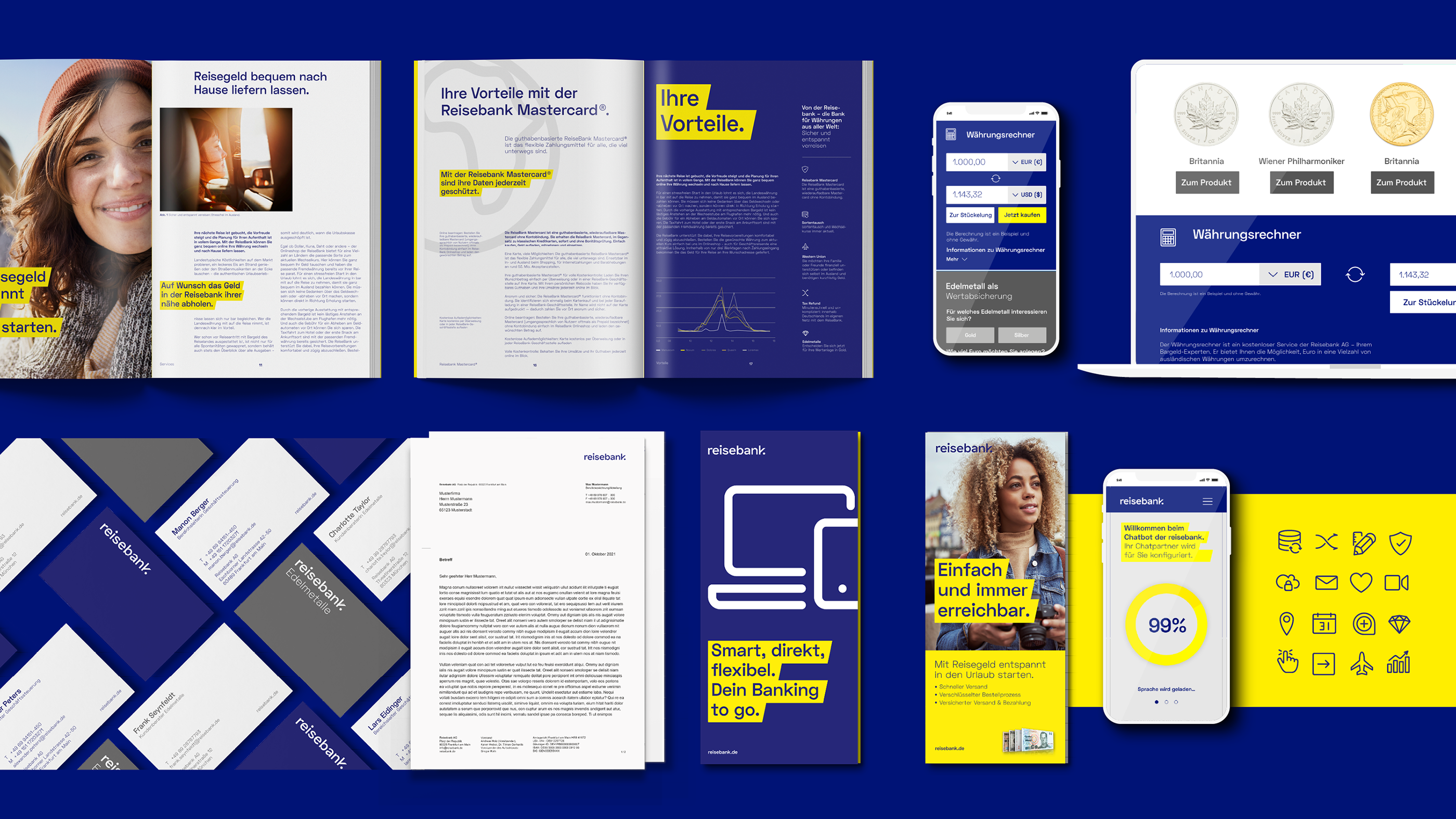 獲得認(rèn)可和強(qiáng)化的品牌定位基于作為旅行者品種和同伴的領(lǐng)先供應(yīng)商的品牌基礎(chǔ),同時(shí)反映了 Reisebank 的產(chǎn)品和服務(wù)范圍向新的、苛刻的目標(biāo)群體及其變化的開(kāi)放通信和移動(dòng)性要求。這樣,品牌戰(zhàn)略就形成了品牌形象后續(xù)內(nèi)容和設(shè)計(jì)升級(jí)的框架。這一升級(jí)不僅在市場(chǎng)上得到認(rèn)可,而且有助于在 DZ BANK 集團(tuán)內(nèi)確立其作為現(xiàn)金和貴金屬專家的地位,從而在長(zhǎng)期內(nèi)成為合作金融集團(tuán)。除了內(nèi)容的重新定位,Reisebank 不同產(chǎn)品領(lǐng)域的正式組織也作為品牌戰(zhàn)略的一部分進(jìn)行了評(píng)估和組織。未來(lái),根據(jù)內(nèi)容要求和所需的自由度,這些將作為靠近 Reisebank 的子品牌或作為更獨(dú)立的背書(shū)品牌進(jìn)行管理。Reisebank 設(shè)計(jì)演變的目的是讓品牌形象顯著、勇敢地復(fù)興,旨在成為一個(gè)更容易接近、平易近人和討人喜歡的品牌?;陂L(zhǎng)久以來(lái)標(biāo)志中的78°角和既定的配色方案等定義元素,對(duì)品牌設(shè)計(jì)進(jìn)行了修改。該品牌的新外觀具有幾個(gè)清晰的元素:平易近人的標(biāo)志、簡(jiǎn)潔易識(shí)別的字體、醒目的色彩和情感獨(dú)特的視覺(jué)語(yǔ)言。新的企業(yè)設(shè)計(jì)增加了靈活性和模塊化,提高了所有接觸點(diǎn)使用的可管理性。Reisebank 的客戶現(xiàn)在可以以一種清晰、簡(jiǎn)單且易于訪問(wèn)的方式體驗(yàn)該研究所。價(jià)值觀也體現(xiàn)了與 Reisebank 的業(yè)務(wù)關(guān)系。這一主張也反映在定義的企業(yè)語(yǔ)言中,在可能的情況下,它無(wú)需專業(yè)詞匯,并且所有目標(biāo)群體都可以理解。象形圖的廣泛使用也強(qiáng)調(diào)了這種可訪問(wèn)性——在跨語(yǔ)言、國(guó)際交流的意義上。
