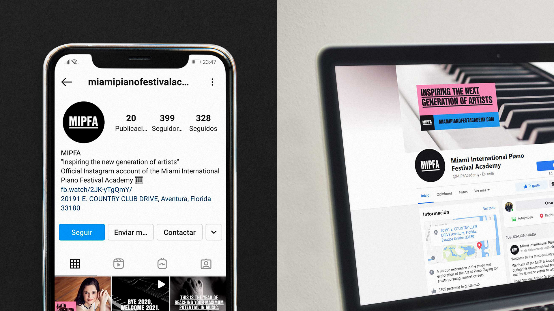 邁阿密國(guó)際鋼琴節(jié)學(xué)院,MIPFA決定創(chuàng)建一個(gè)在線平臺(tái),提供世界上一些最好的鋼琴家的課程、現(xiàn)場(chǎng)課程和其他功能。學(xué)院需要一個(gè)新的身份來(lái)重新定位為一個(gè)當(dāng)代和數(shù)字化的機(jī)構(gòu),旨在激勵(lì)下一代鋼琴家大師。