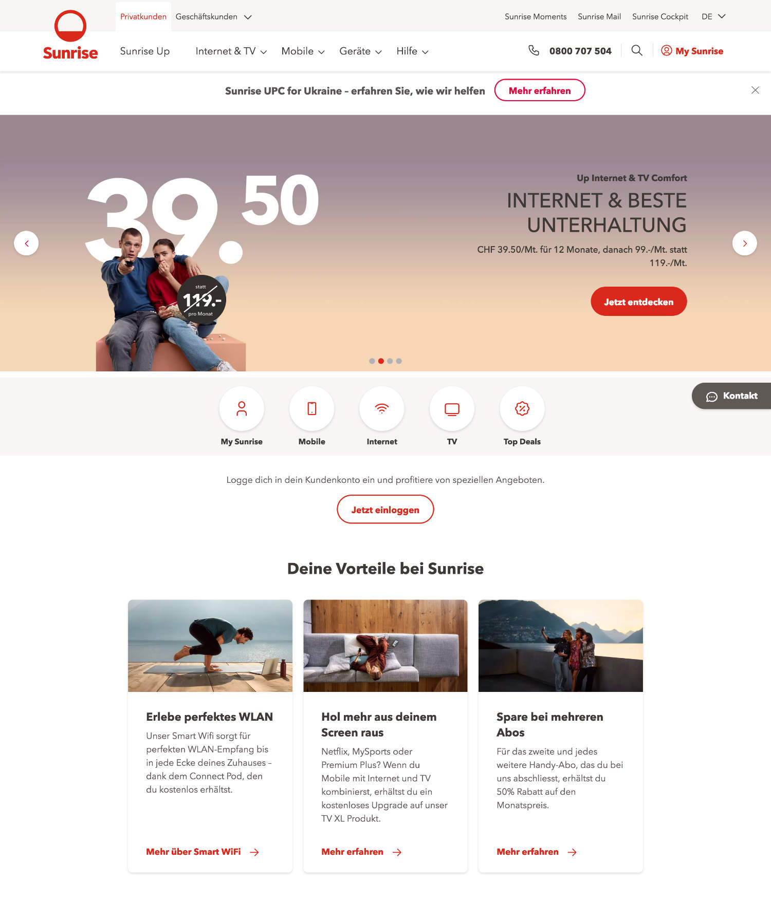 瑞士電信公司Sunrise UPC于2020年底從UPC有線網(wǎng)絡(luò)運(yùn)營(yíng)商與手機(jī)提供商Sunrise合并中誕生,對(duì)其品牌進(jìn)行了排序。日出將成為未來(lái)的主要品牌,同時(shí)獲得新的