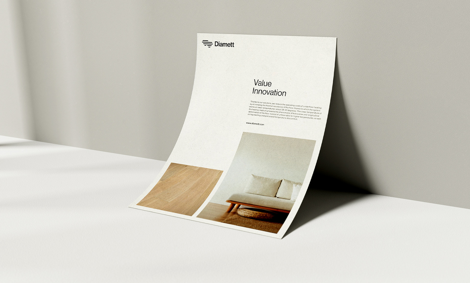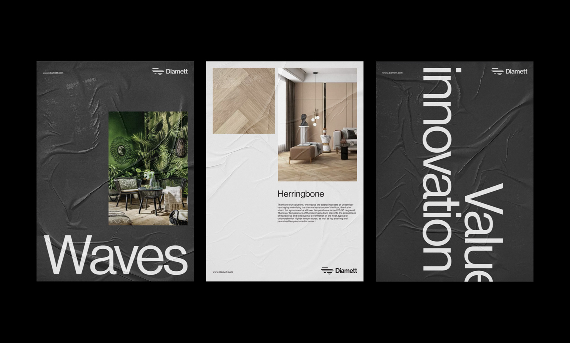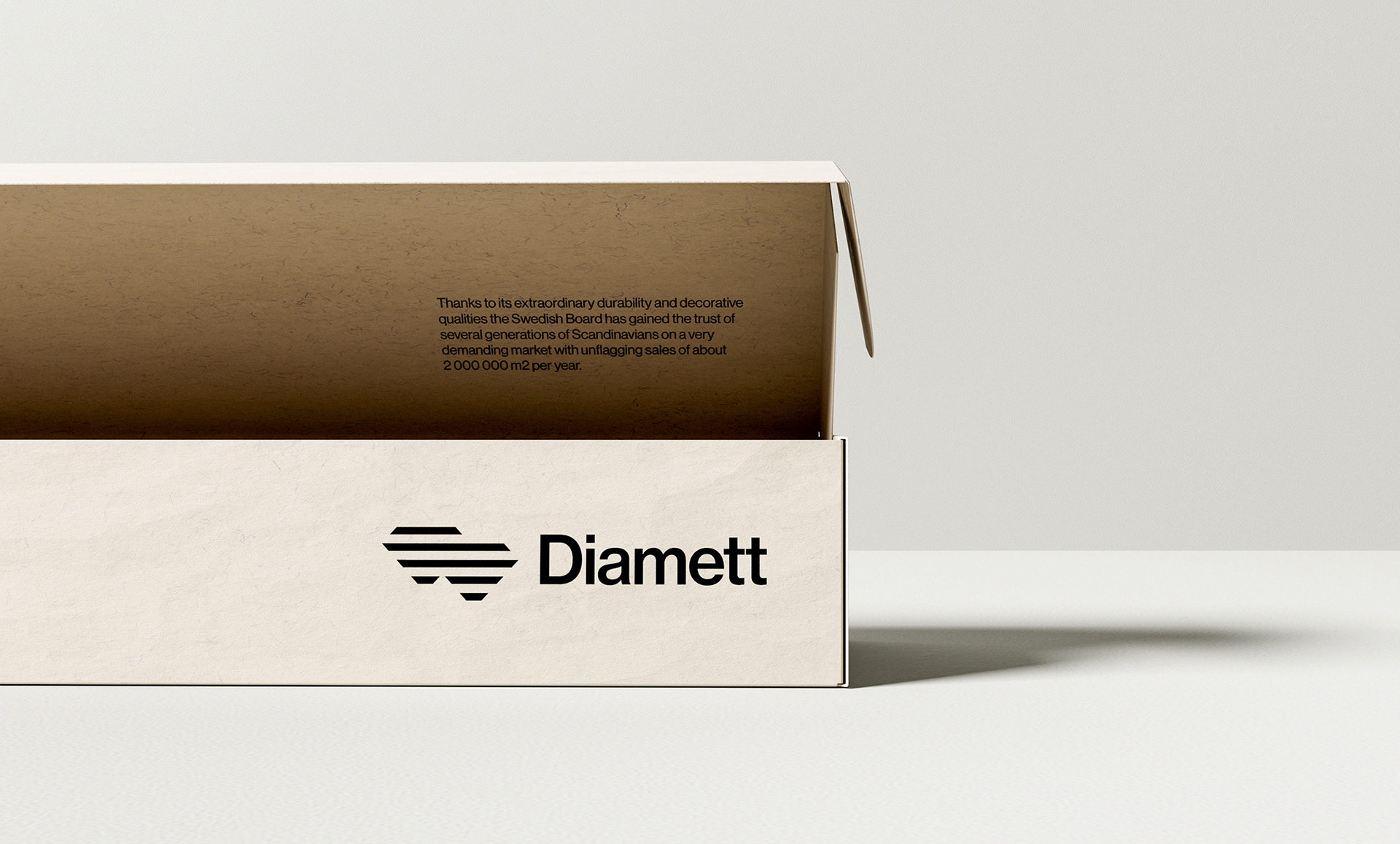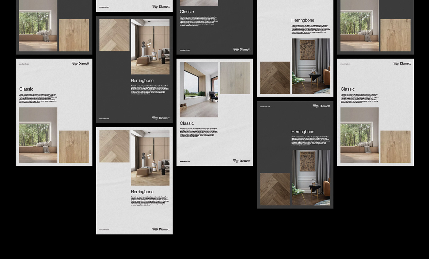 家居行業(yè)Diamett地板制造商品牌設計:Diamett是一家高端地板制造商,憑借其名為“瑞典板”的專利解決方案,擁有無與倫比的性能。七毫米厚的高密度HDF芯和八層清漆覆蓋在木材單板上,結果是地板可以承受任何虐待,在顏色和結構上都具有自然的光潔度。該技術還具有環(huán)保效益,僅使用1/6平方米實木地板所需的木材,使直徑地板成為可持續(xù)發(fā)展的選擇,而不會影響質量。一個額外的優(yōu)勢是地板的導熱率比常規(guī)層壓板高63.5%,這使得地板下供暖更有效,更節(jié)能。