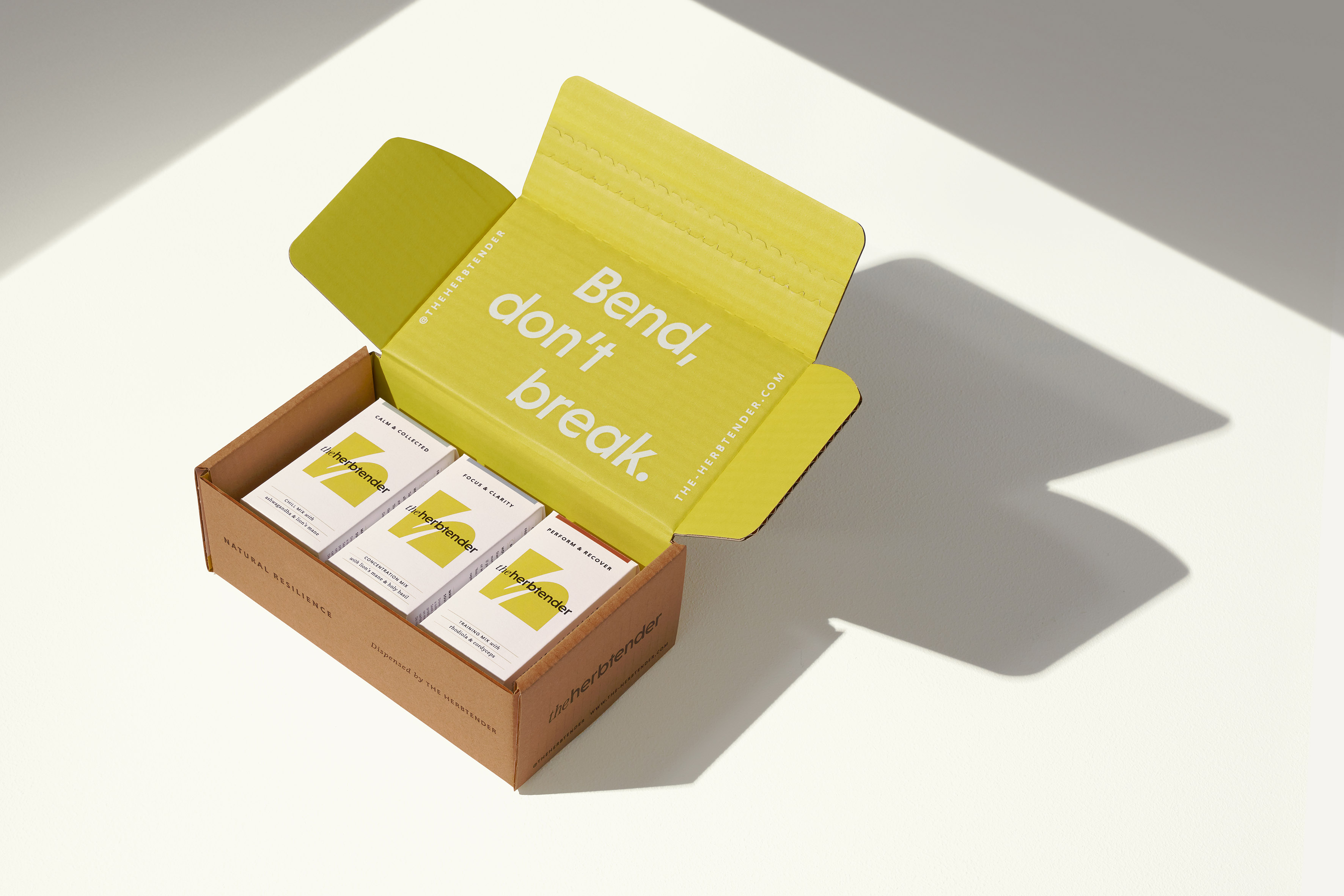 “彎曲不斷裂”的口號賦予了該品牌一個清晰的理念,即圍繞自然彈性的概念。Herbtender鼓勵人們擁抱生活,讓他們變得有韌性、自力更生,每天都變得更強大,而不是遵從社交媒體上流行的、但可能放縱的“自我護(hù)理”代碼,這些代碼尋求避免壓力。