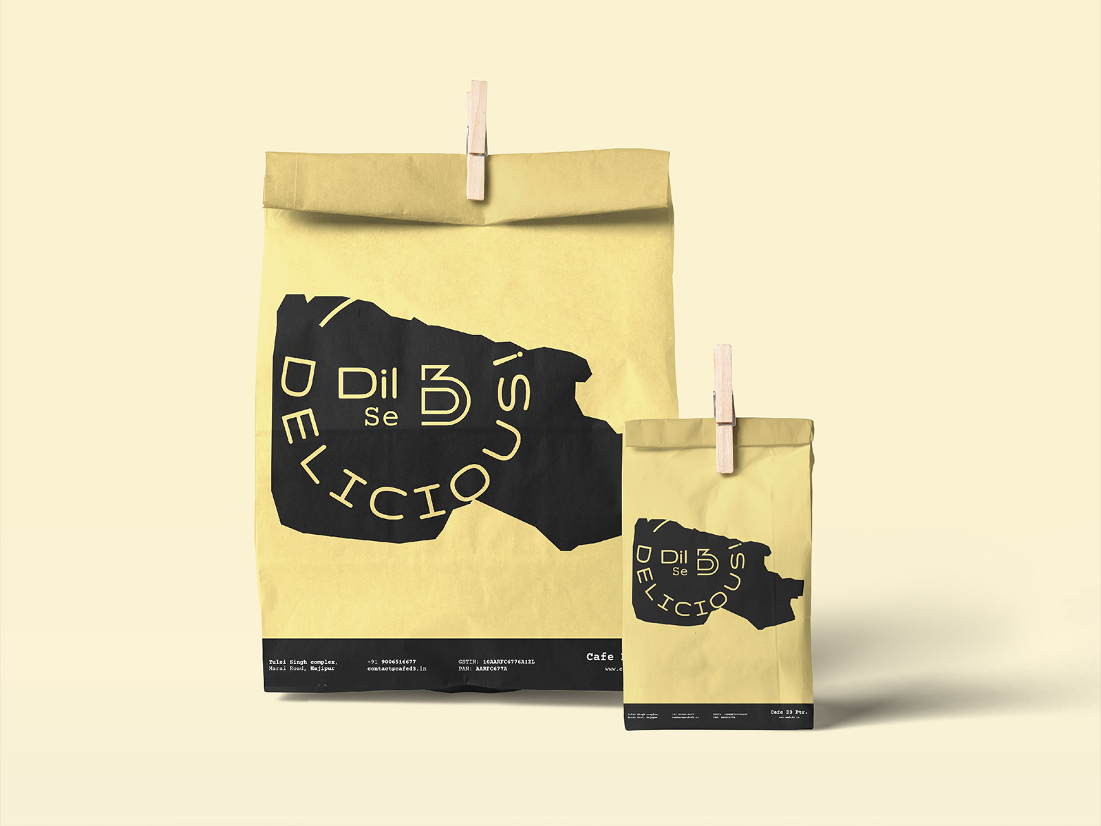 我們?yōu)镃ade D3交付的包裝設(shè)計是標(biāo)簽貼紙和手提袋。對于手提袋,我們?yōu)?3 種最常見的外賣用例選擇了 3 種標(biāo)準(zhǔn)尺寸。