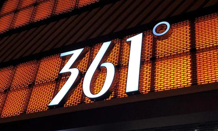 品牌寓意:361°Logo以阿拉伯?dāng)?shù)字“361”和幾何概念“°”組成,意指超越于360°的常規(guī)與圓滿