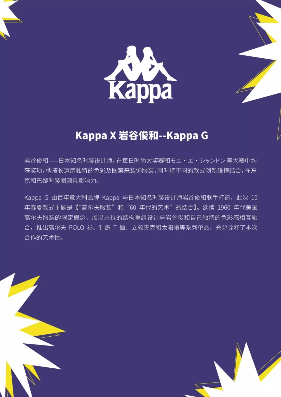 品牌寓意:Kappa 所予人的第一印象是年輕、活力、熱情、時尚、酷愛運(yùn)動。