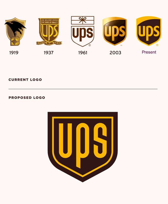 2003 年,F(xiàn)utureBrand將標(biāo)記簡(jiǎn)化為盾牌。設(shè)計(jì)師Allan Peters覺得此次標(biāo)志升級(jí)失去了讓人難忘的東西。所以決定重新審視UPS的標(biāo)志,嘗試恢復(fù)之前的靈魂。并保羅·蘭德設(shè)計(jì)的標(biāo)志基礎(chǔ)上簡(jiǎn)化了包裝。重新創(chuàng)建了一個(gè)較強(qiáng)應(yīng)用性的品牌系統(tǒng)。