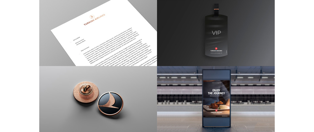 新品牌的特色是一個(gè)精細(xì)化版本的大雁標(biāo)志封裝在圓形內(nèi),圓形內(nèi)采用平滑的紅色。大雁被扭曲,調(diào)整了對(duì)角傾斜度,同時(shí)體型縮小,頭部與圓圈分離,制造出空間感。圓形外框設(shè)置為白色,得到一個(gè)紅白相間的核心調(diào)色板。字體方面除繼續(xù)選用無(wú)襯線字體外,部分字母上做了圓角處理。Imagination表示,與該標(biāo)志相伴的是由七條水平線組成的波浪圖,旨在反映世界七大洲,更符合其國(guó)際航空公司的身份。并補(bǔ)充稱(chēng),該標(biāo)志位于線條圖形的“匯聚點(diǎn)”或中心,代表著“全球旅游中心的土耳其航空公司”。